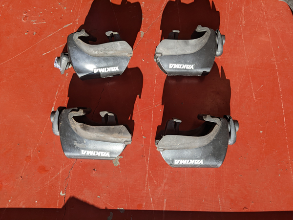 Yakima lowrider tower set of four. Perfect for vehicles with existing side rails. These towers support a Yakima round bar close to the roof to minimize wind resistance. Perfect for transporting canoes/kayaks or cargo boxes.
